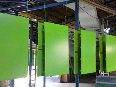 5.固化處理:三噴涂層一般需要二次固化,鋁材進入固化爐處理,固化溫度一般在180℃-250℃之間,固化時間為15-25分鐘,不同氟碳涂料生產(chǎn)廠家 ,都會根據(jù)自己的涂料,提供最佳的溫度和時間。氯碳噴涂廠(鋦油廠)也有的根據(jù)自己經(jīng)驗把三噴時的兩次固化改為一次固化。